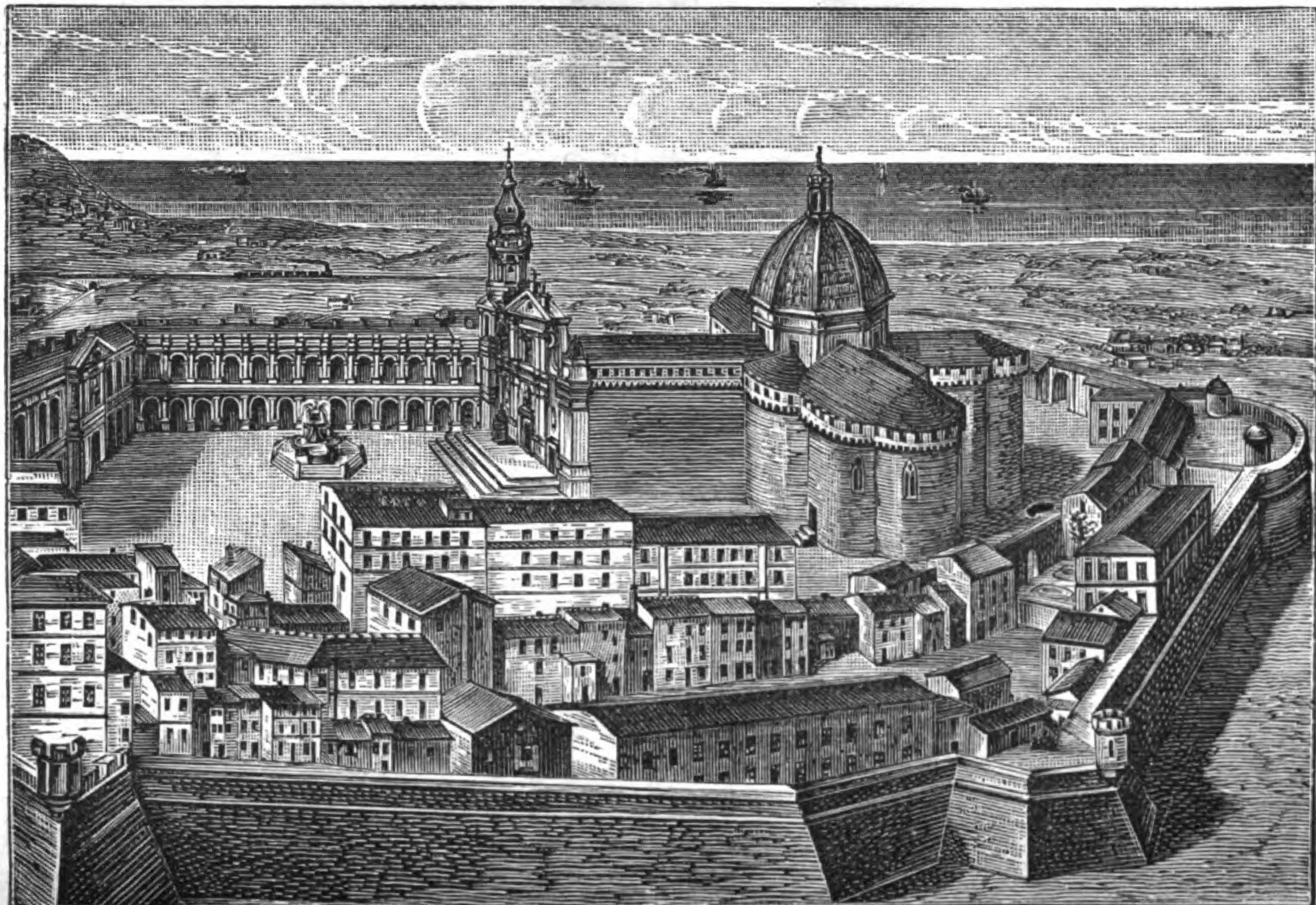 Acima da cidade de Maria eleva-se a grande catedral, fortificada como se pelos baluartes de um enorme castelo, e encimada pela Virgem de Loreto resplandecente em vestes de ouro.