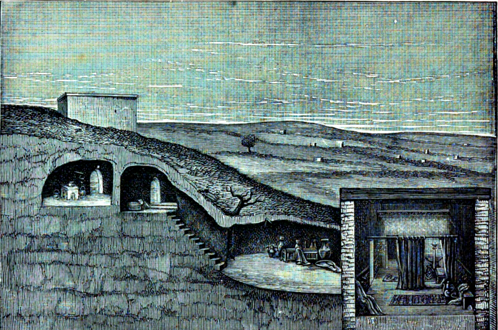 A segunda porta, abrindo-se sobre a encosta da colina, ficava no topo da escada escavada na rocha e situada ou no lado leste da pequena Caverna, na qual encontramos uma entrada murada, ou então perto dela, na extremidade leste da passagem escavada na rocha ao lado dela, onde atualmente fica a entrada leste.