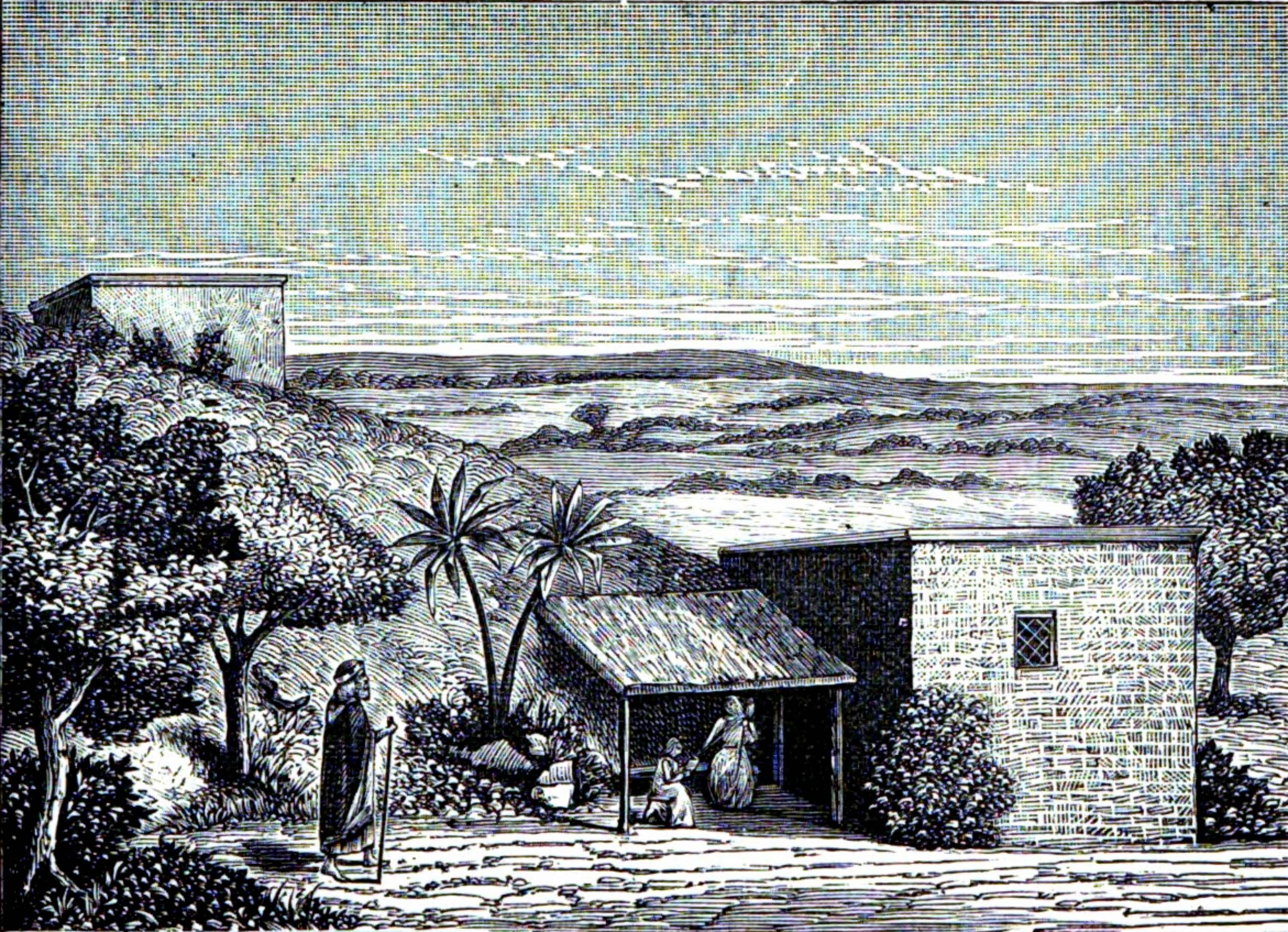Nazaré foi construída na encosta de uma colina perfurada por cavernas antigas, que formam os cômodos dos fundos de muitas das habitações. A Casa da Sagrada Família abria-se assim para uma gruta, e no local onde se erguia foi erguida uma capela, chamada Capela do Anjo. Esta capela ocupa apenas uma parte do terreno; e os fundamentos sagrados estão ao redor dele. Não teria sido bom, por muitas razões, ter erguido esta estrutura realmente sobre as antigas e sagradas fundações que a Santa Casa deixou em sua partida. Assim, nós o achamos mais curto e estreito, e repousando sobre fundamentos próprios, encerrados no solo sagrado, que os antigos fundamentos sempre demarcaram claramente. O lado norte desta capela encosta-se à rocha, e tem uma abertura para a Gruta.