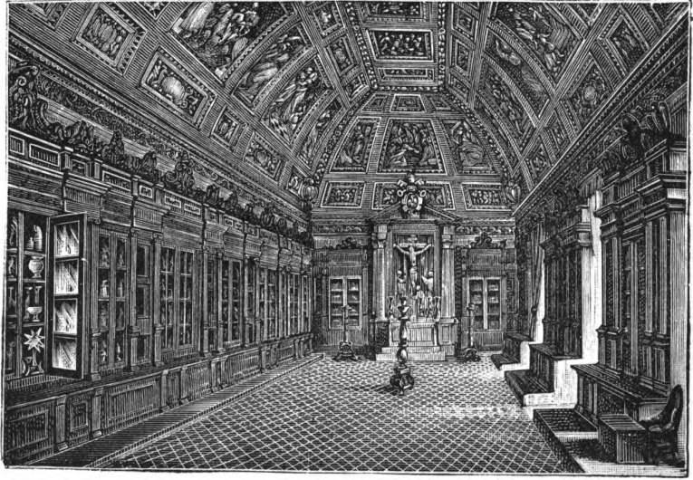 Os sessenta e nove armários de nogueira que ficam ao redor do tesouro custam 65.000 liras. Os magníficos afrescos pintados no teto são em si um verdadeiro tesouro, e a sacristia a ele anexa é adornada com quadros de grande beleza.