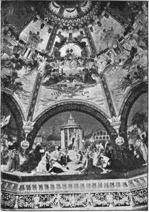 A capela adjacente está sendo decorada com oferendas dos eslavos. O projeto é do Conde Sacconi e está sendo executado pela Professora Stella e pelo Professor Cav. Moretti. O vitral representando os santos eslavos é obra deste último. Sobre o altar está representada a Santíssima Virgem com S. Cirilo e S. Mathodius, apóstolos dos eslavos, e as paredes são adornadas com uma variedade de mármores coloridos.