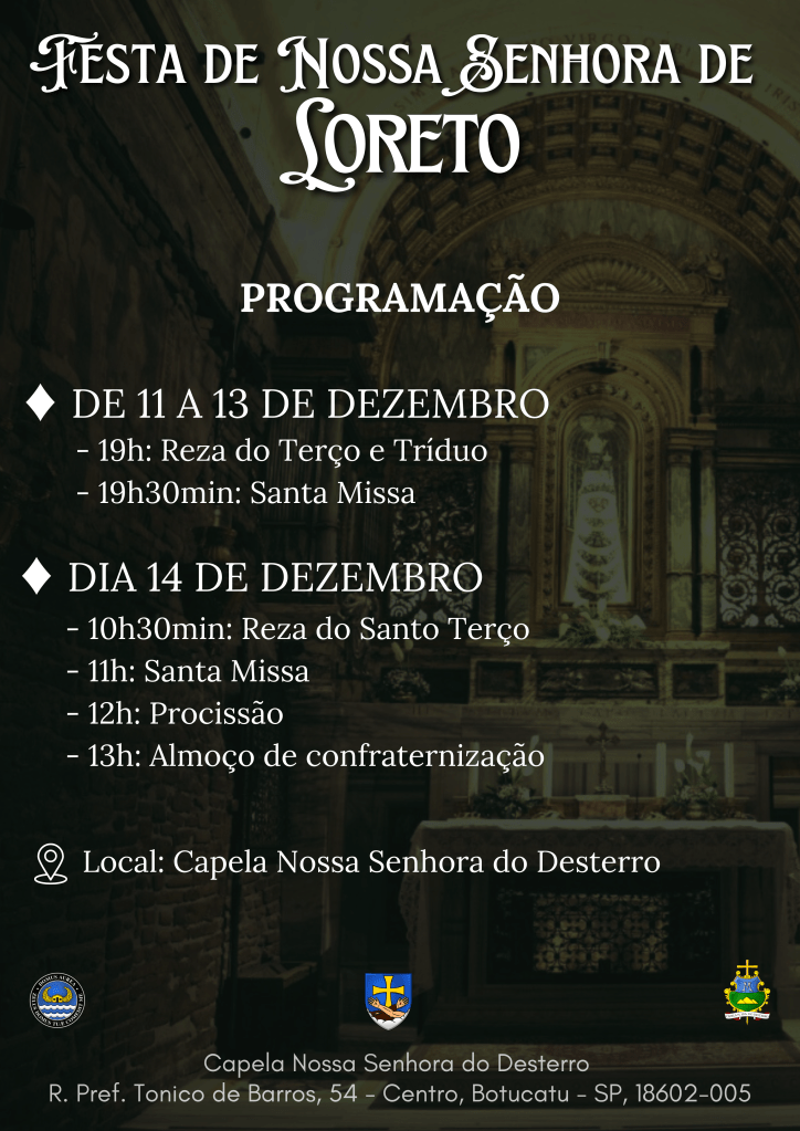 Neste mês comemoraremos a festa de nossa Excelsa Patrona a Senhora de Loreto, convidamos a todos a se fazerem presentes nesta tão solene festividade!